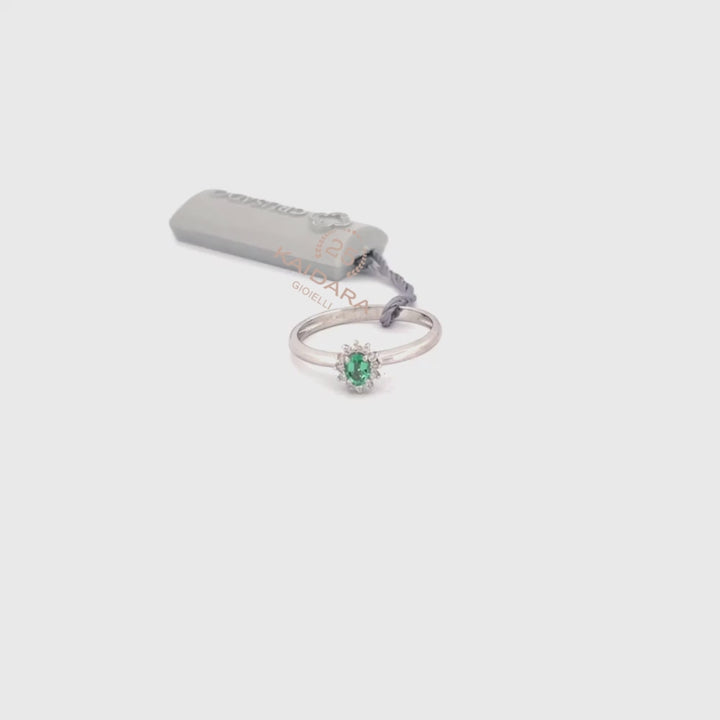 Anello in Oro Donna Crusado Collezione Tropea Minimal Con Diamanti e Smeraldo
