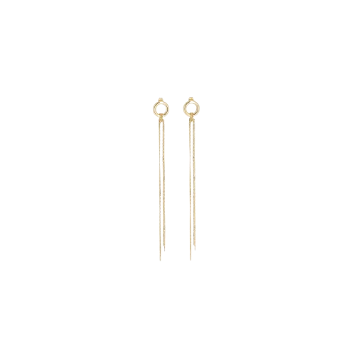 Orecchini in pianura o oro con oro fine per ionizzazione formati da un anello su cui sono attaccate frange di acciaio.